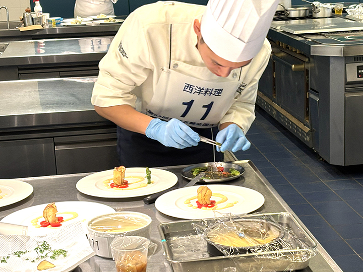 23歳以下の全国の技能者(全42職種)が競技を競う、第63回技能五輪全国大会が厚生労働省、中央職業能力開発協会および愛知県の主催で開催されました。西洋料理職種は、全国の予選大会から勝ち残った38名の代表選手が参加登録をし、愛知県内での大会日程より先行して行われました。 10月2日の全体ミーティングでは、競技ルールの説明や競技会場(東京誠心調理師専門学校)の調理機器の確認等を行い、10月3〜6日の4日間で競技大会を開催しました。 競技の結果、第63回大会の優勝者(金賞)は、鈴木花歩選手(株式会社ジョイン パレスグランデール)に決定しました。 鈴木選手、おめでとうございました! 第63回技能五輪全国大会 入賞者一覧